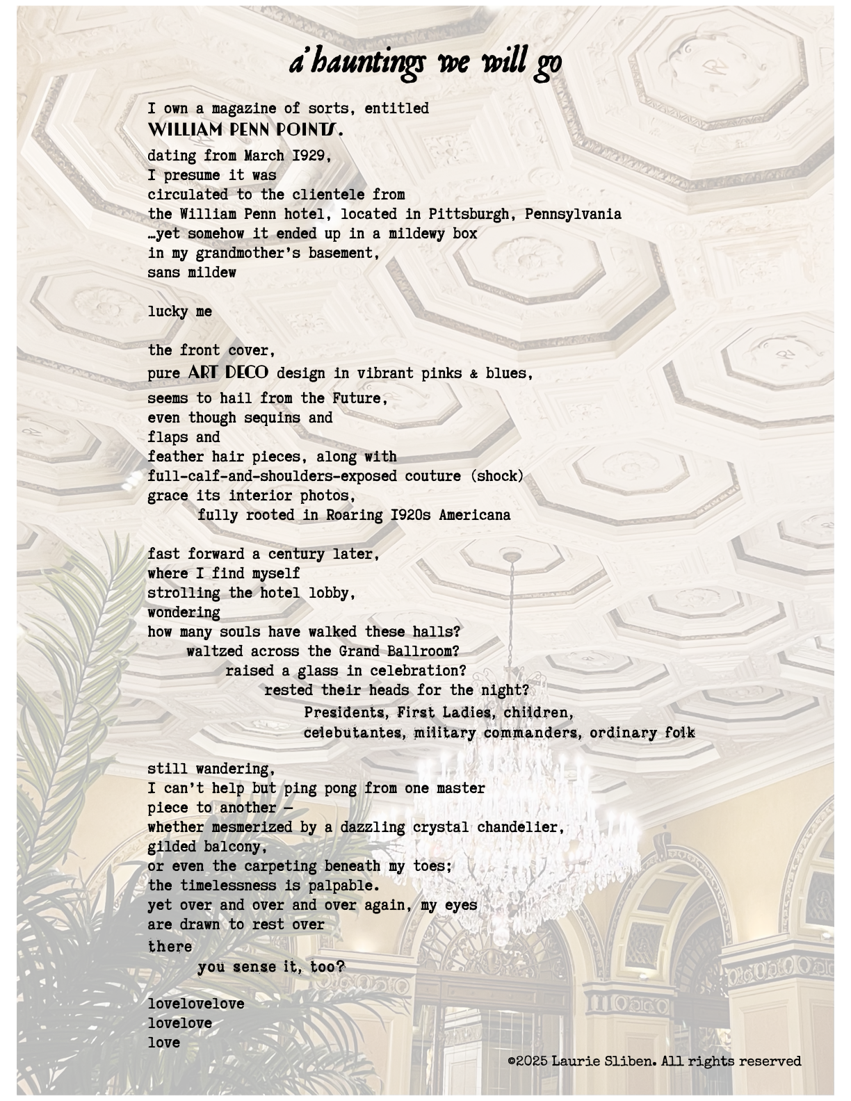 Rumor has it, there may be a few roaming around the Omni William Penn*, a beautiful Historic Hotel, well worth a visit or a walk-through. There’s even a Speakeasy on the hotel’s lower level, which sounds spooky enough all by itself. Naturally, when I came across an old publication (see below), it got me thinking…